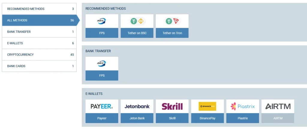 - Cryptocurrencies – Make deposits with Bitcoin, Ethereum, or other major coins for fast and anonymous transactions.